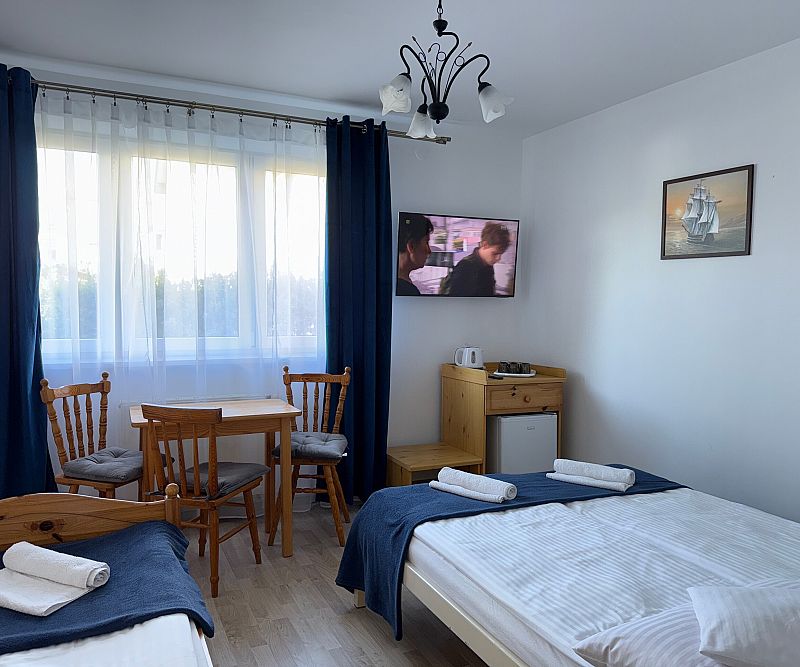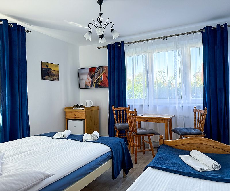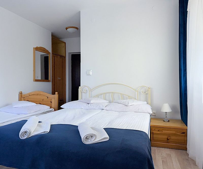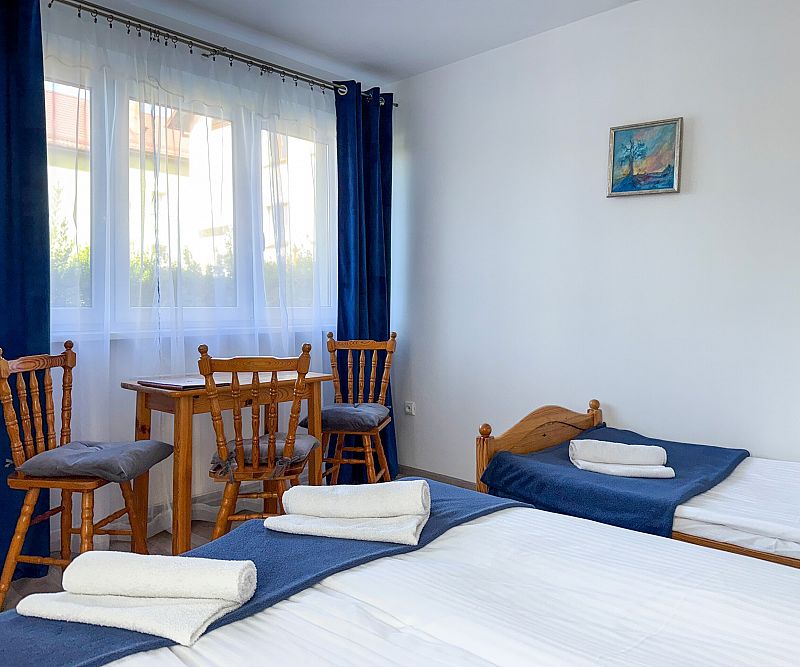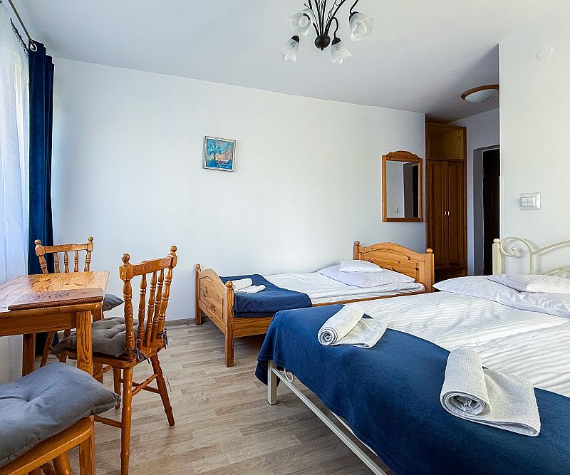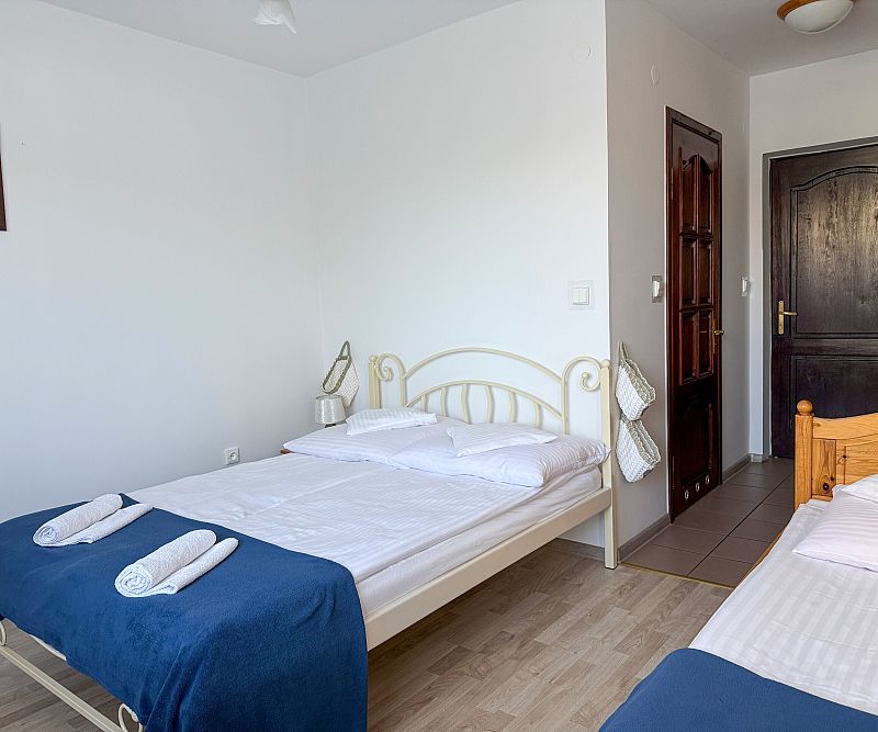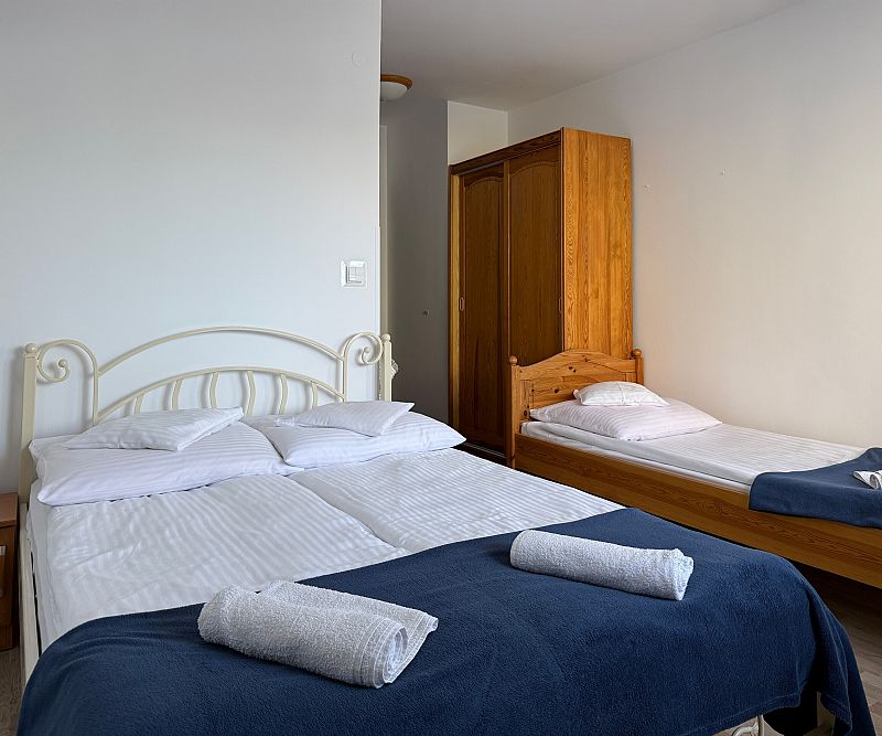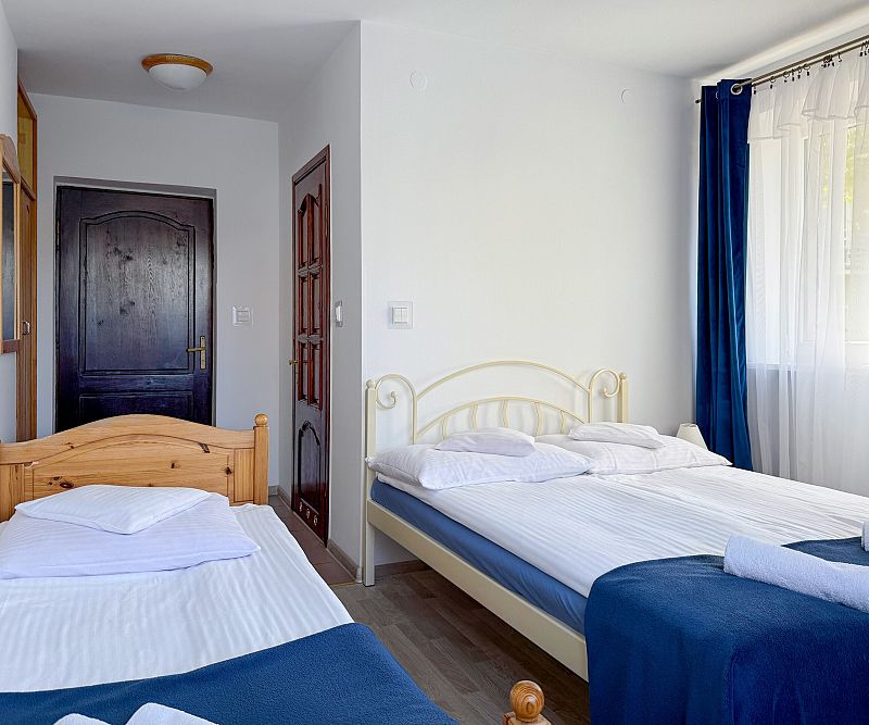Pokoje 3-osobowe z łożem małżeńskim i jednym łóżkiem pojedynczym.